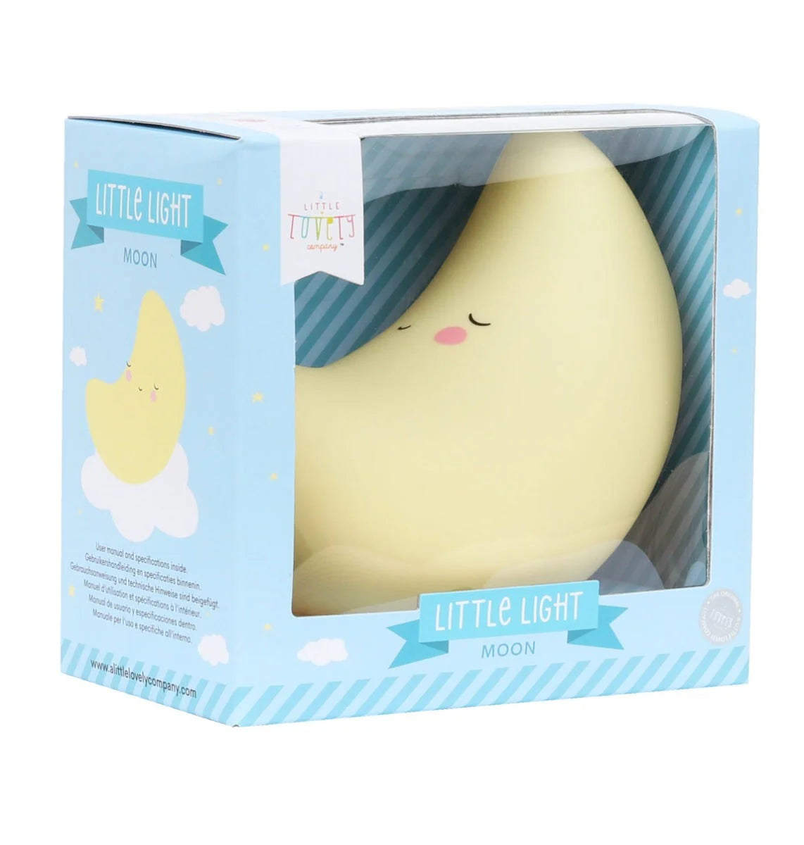 a small, LED-powered night-light shaped like a crescent moon that emits a soft, gentle glow, ideal for children’s rooms or calming nighttime ambiance.