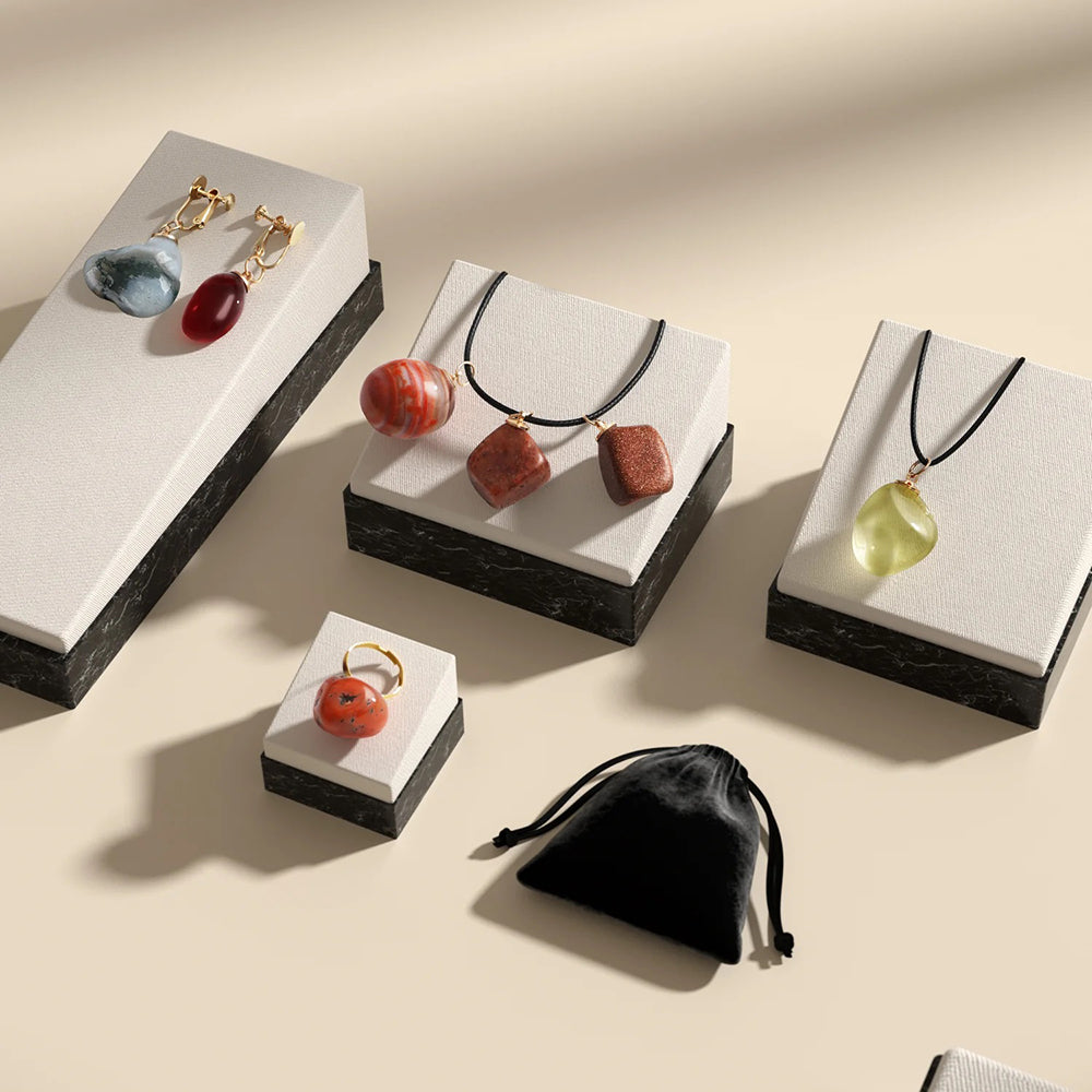 Includes: stone grinder, rotating bucket, acoustic enclosure and base, 9 raw stones, 50 g of 150-mesh powder, 50 g of 600-mesh powder, 100 g white crystal, 50 ml measuring cup, jewellery accessories kit, 2 velvet bags, USB wire, and illustrated instructions.