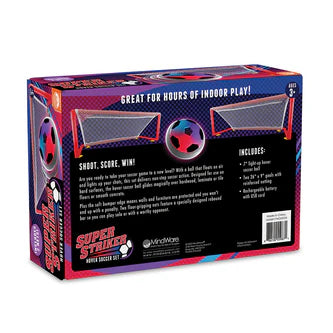 Are you ready to take your soccer game to a new level? With a ball that floats on air and lights up your shots, this set delivers non-stop soccer action. Designed for use on hard surfaces, the hover soccer ball glides magically over hardwood, laminate or tile floors or smooth concrete. Plus the soft bumper edge means walls and furniture are protected and you won't end up with a penalty. Two floor-gripping nets feature a specially designed rebound bar so you can play solo or with a worthy opponent.