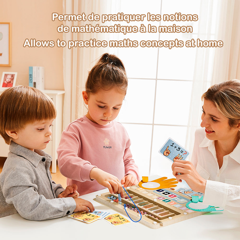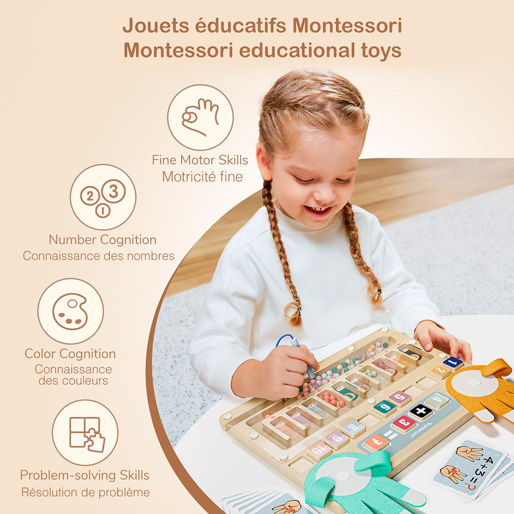 Introduce little learners to the joy of numbers with the Finger & Bead Math Game, a hands-on way to explore counting, sorting, and early numeracy. This engaging set combines tactile play with cognitive learning, helping children develop math skills, fine motor control, and problem-solving abilities. Designed for children aged 3 and up, it includes a sturdy wooden board, 11 colorful number blocks, 10 double-sided learning flashcards, soft felt palms, a magnetic pen, and 55 magnetic beads in 10 vibrant colors—everything your child needs to explore numbers through interactive, playful learning.